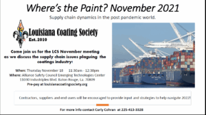 The Louisiana Coatings Society is pleased to announce our official Kickoff meeting for 2021. We’re back and looking forward to seeing everyone. The meeting will