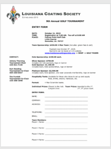 Please fill out the application form and return it to an LCS meeting, board member, or e-mail it to secretary@LouisianaCoatingSociety.org. Good luck to all of